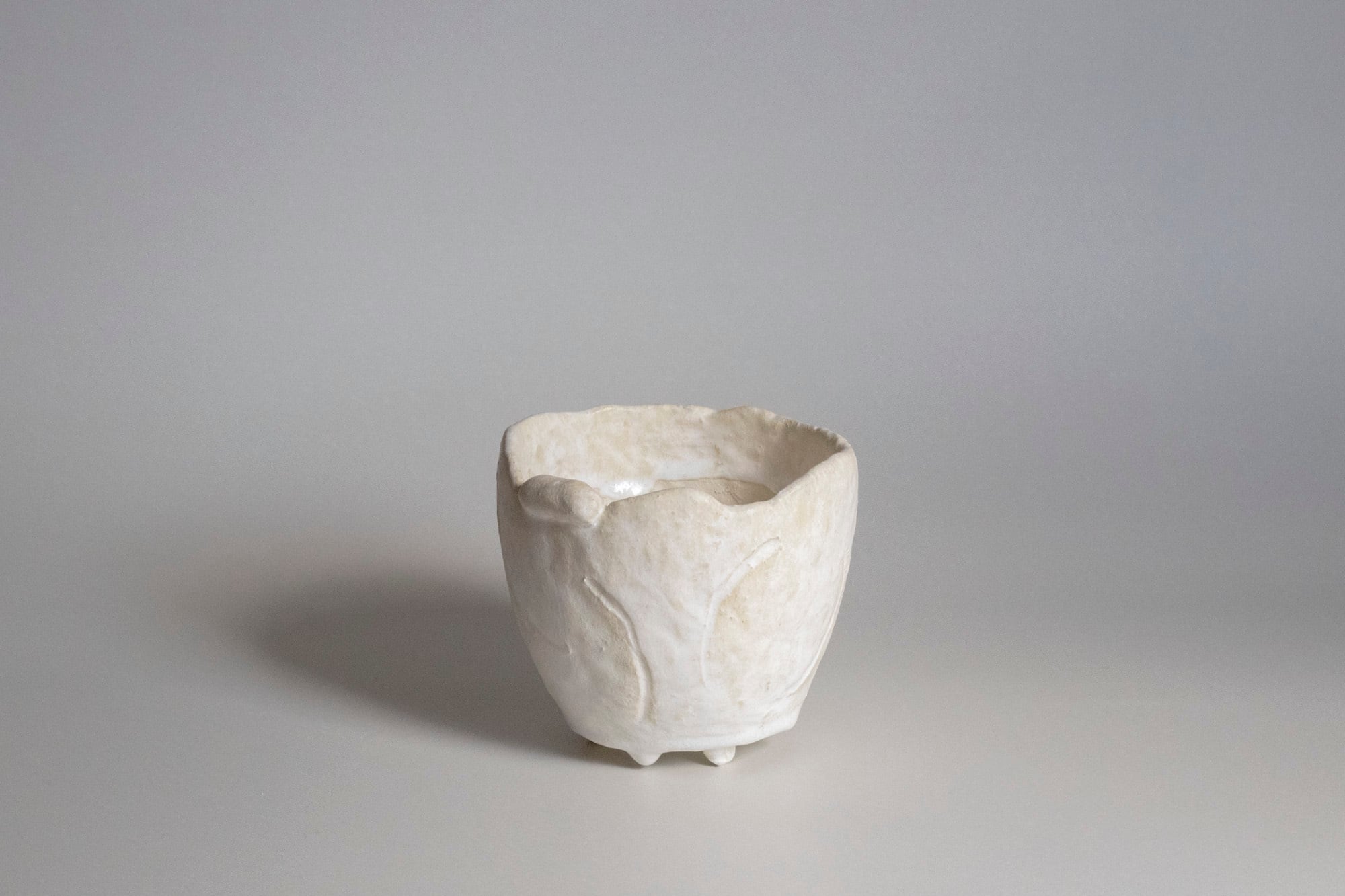 外側は釉薬をかけていますが内側はふちの部分のみに留め、土の入る部分は水分がこもりすぎないよう釉薬をかけていません。